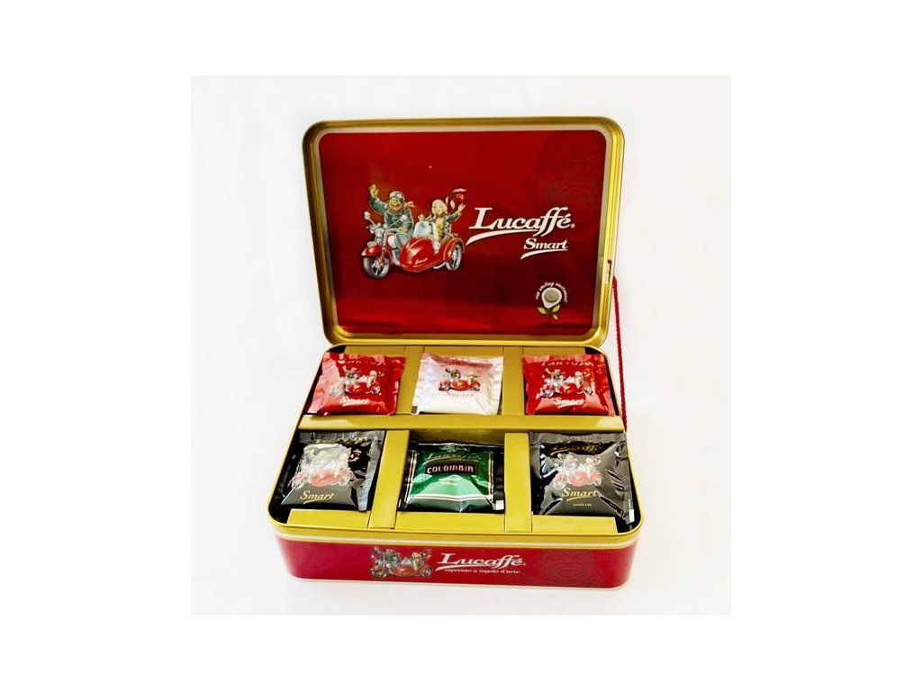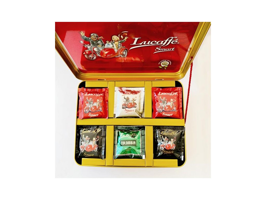 Tento unikátní designový box obsahuje 4 druhy kávy Lucaffé ve SMART PODech - 35 mm. POD-y jsou ekologickou formou kapslí kávy.